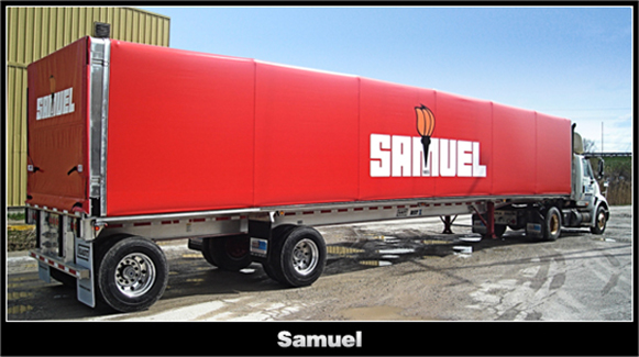 This month’s System-of-the-month is one that is extra special to us as they have been one of our valued customers since day 1. Robinson Transport has relied on Quick Draw Tarp systems for nearly 20 years to cover their fleet. This month, we feature the latest Robinson Transport B-Train Quick Draw Tarp System. Pictured is Keith Robinson, of Robinson Transport and Walt DeMonte, Quick Draw Tarpaulin Systems Founder/President at time of delivery.